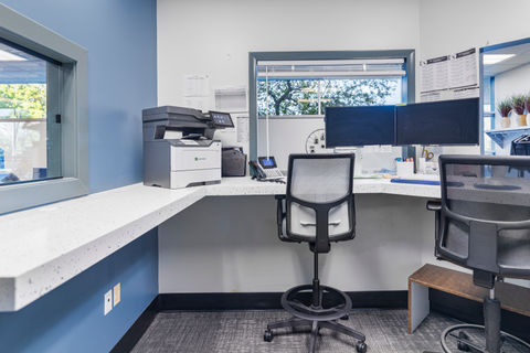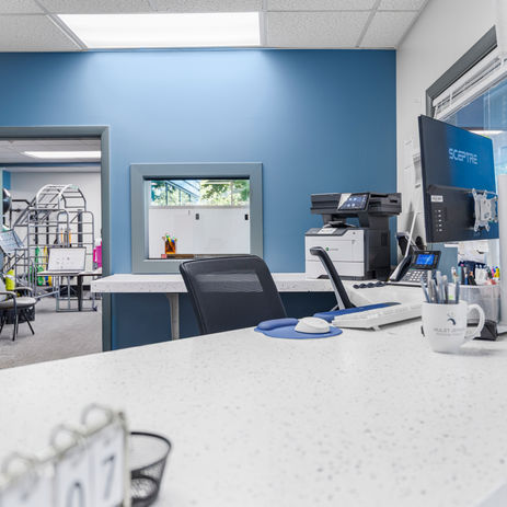 We partnered with the team at HJPT to give their workspace a much-needed refresh, creating an environment that feels both inviting and professional. Our crew installed new bathroom flooring, repainted the main walls, and completely transformed the reception area. The reception desk, originally full of tricky angles, was capped and reimagined into a stunning focal point. We also added a custom gray storage cabinet to complete the look. The result: a bright, functional, and modern space designed for productivity and comfort.
